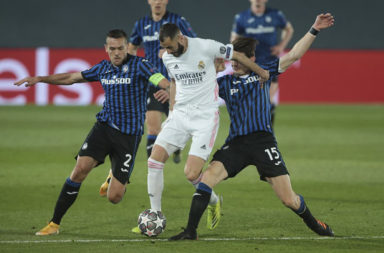 Karim Benzema luego del fallo del arquero del Atalanta Sportiello y de un excelente…