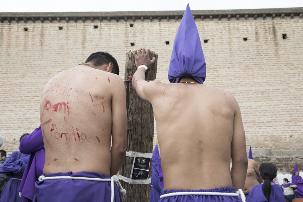 Desde hace ocho años lo acompañan sus sobrinos Mauricio y Wilson, ellos también elaboran su cruz con espinas. El sacrificio y sentir el dolor es un homenaje que hacen a Dios.